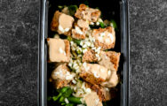 Lean ground turkey with our garlic butter dry rub and ranch drizzle and mozzarella. Served with zucchini, bell peppers, and broccoli