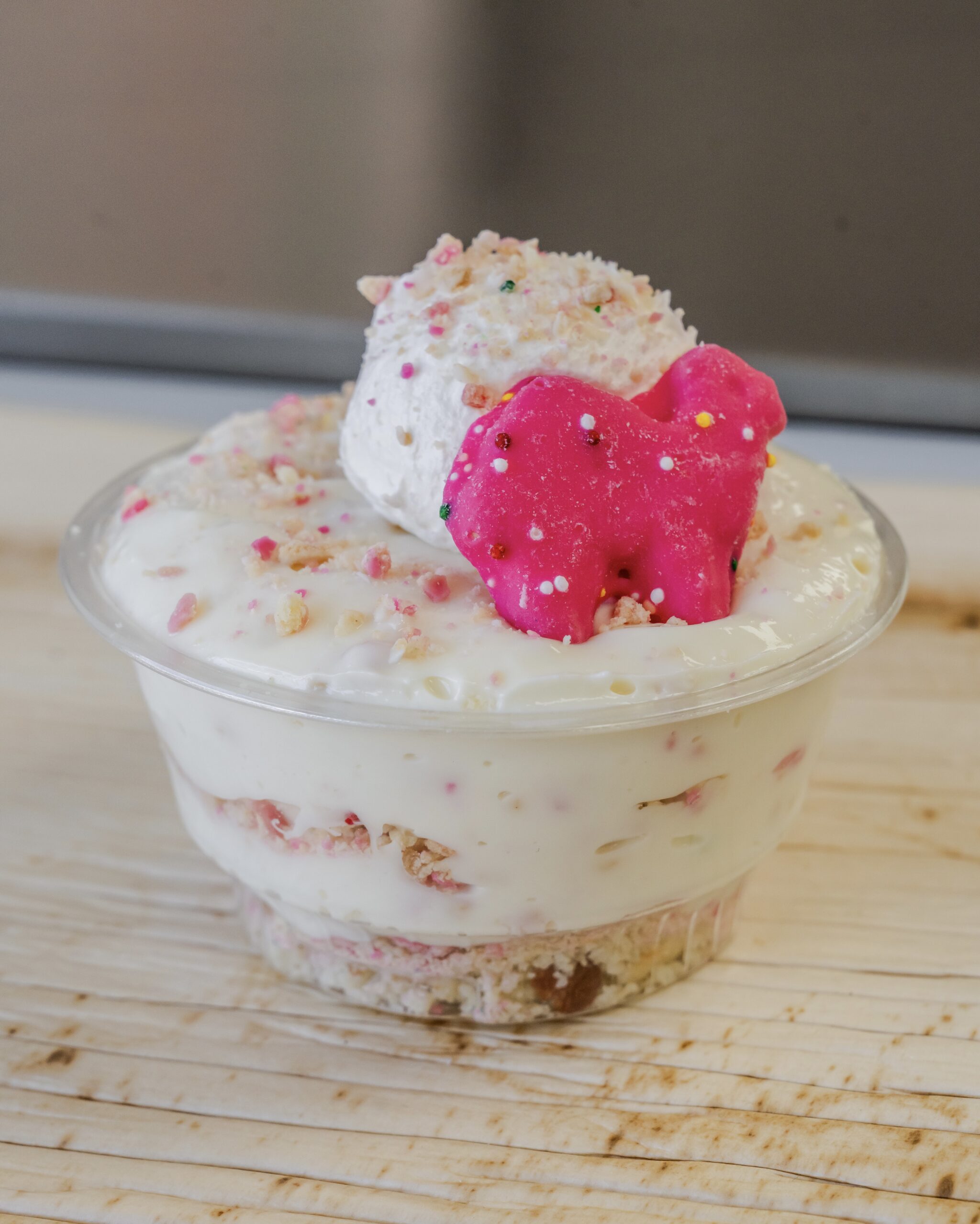 CREAMY, HIGH PROTEIN CHEESECAKE LAYERED WITH SOFT ANIMAL CRACKER CRUMBLE. SWEET, COLORFUL, GUILT-FREE DESSERT WITH A VELVETY TEXTURE. TASTES LIKE A CHILDHOOD FAVORITE THAT’S BEEN TRANSFORMED!