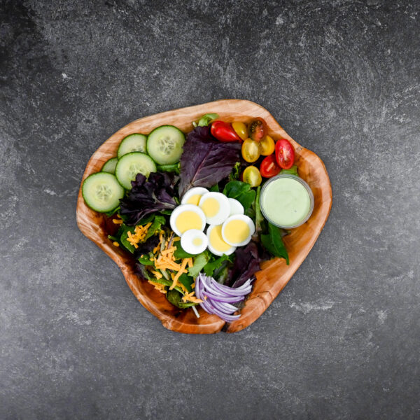 Ingredients: Yogurt, Plain, Whole Fat, Organic, Buttermilk, Sour Cream, Lemon Juice, Garlic Powder, Dill, Onion Powder, Parsley, Chives), Avocados, Half and Half (Milk, Cream), Tomatillos, Spinach, Salt, Garlic Powder), Spring Mix (Arugula, Oak, Romaine, Spinach, Frisée), Egg, Cucumber, Tomatillos, Cheddar (Milk, Cultures, Salt, Enzymes), Onion