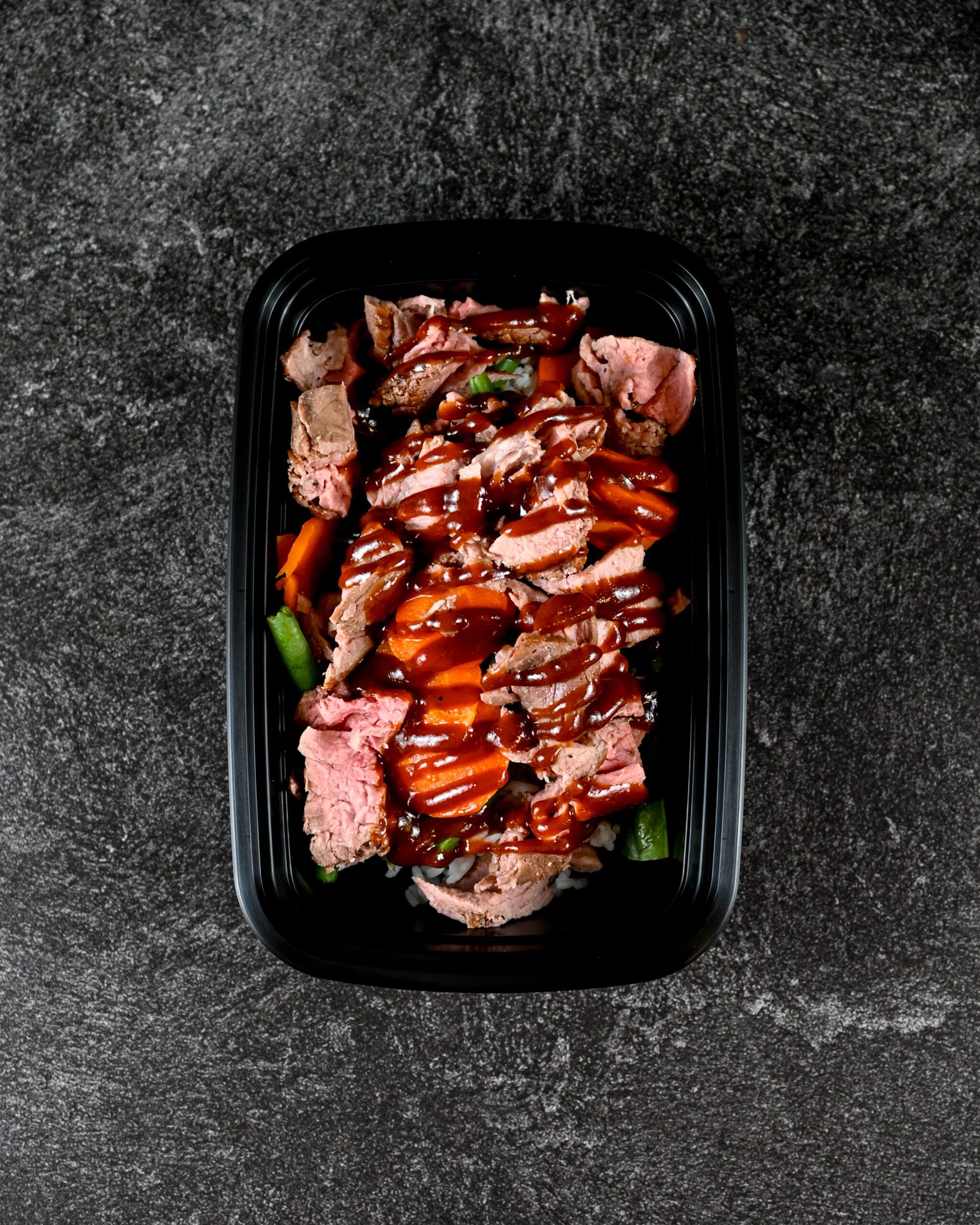 Ingredients: Grass Fed Beef Sirloin, Black Beans, Green Beans, Jasmine Rice, Carrots, BBQ Sauce (Tomatoes, Sugar, Vinegar, Molasses, Natural Smoke Flavor, Dried Onions, Garlic