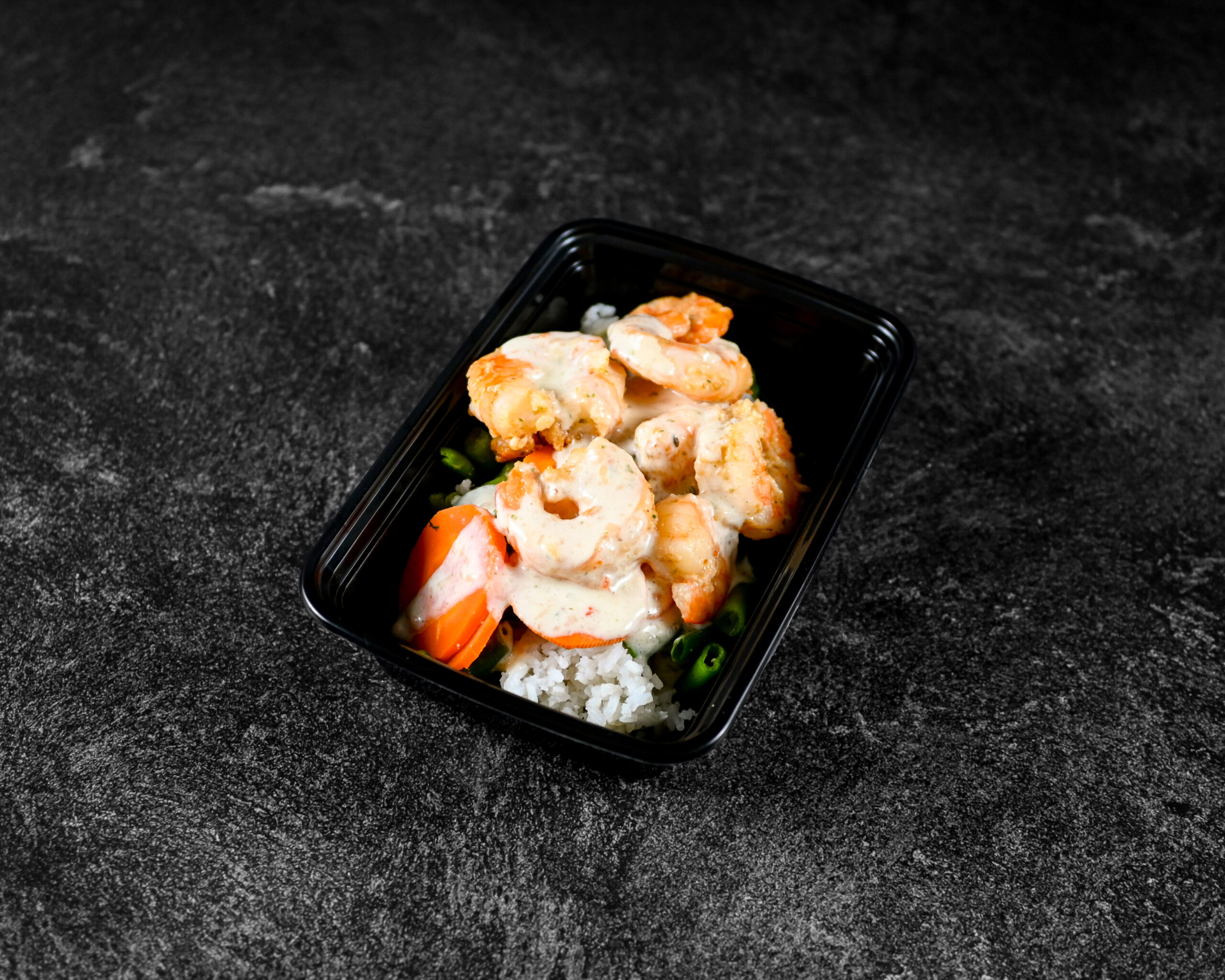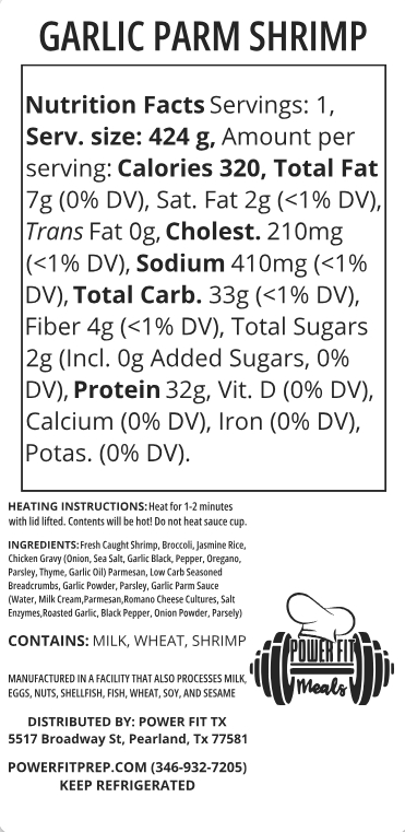 FRESH SAUTEED SHRIMP WITH CREAMY GARLIC SAUCE, JASMINE RICE, GREEN BEANS, AND CARROTS!