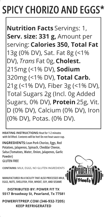 Ingredients: Egg Whites, Potatoes, Pork Chorizo, Egg, Spinach, Low Sodium Cheddar, Jalapenos